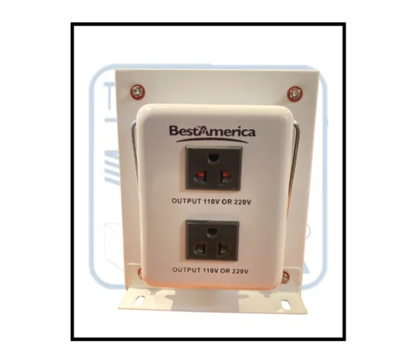 Gabinete Metálico IP-20 con cordón y enchufe macho inyectado con tierra 250V/10A en conexión de entrada, enchufe hembra 110V en conexión de salida.
